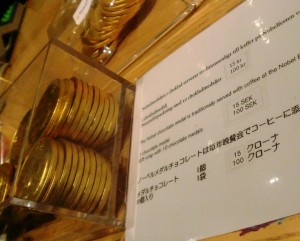 もちろん、授賞式の会場となるストックホルム市庁舎やノーベル博物館にも行きました。山中教授が購入したというメダルのチョコレートもお土産に買ってきました。こうやって自分が行ったことのある場所をテレビで見るのは楽しいものです。