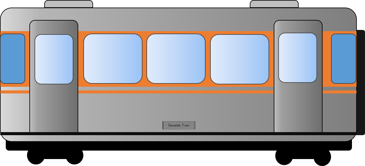 先日も、電車の絵が欲しくて、無料のイラストサイトから持ってきてもよかったのですが、気分転換もかねて自分で書いてみました。電車って直線と円だけで割と簡単にそれらしく描けるので、図形を組み合わせてものの数分程度で電車らしい形が出来上がり。(電車に詳しいわけではないので、ここが違う!等の細かい突っ込みはご遠慮ください^^;)